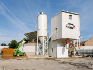 Betonárna typ MERKO HBS 1T s čtyřkomorovým zásobníkem kameniva, míchačkou o objemu 1m³ a hodinovým výkonem 45m³. Celoroční, automatický, počítačem řízený provoz. Betonárna je pro zimní provoz opatřena zařízením pro ohřev záměsové vody.